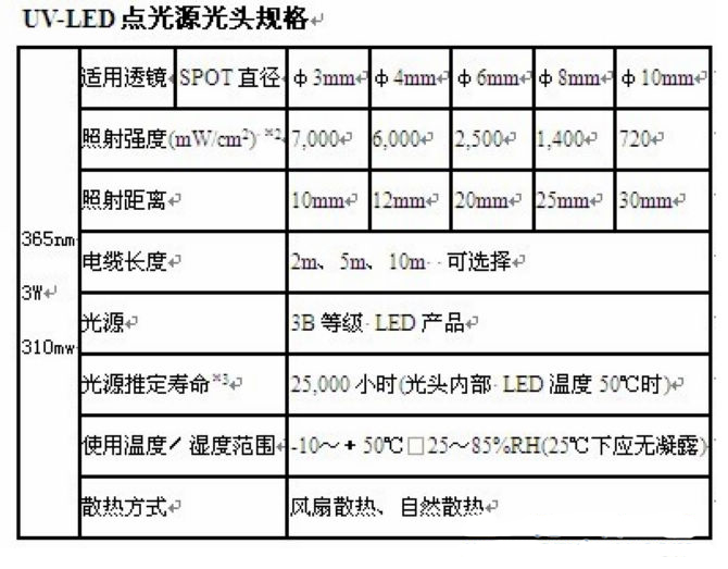 ■熱輻射小,照射機采用日亞等發(fā)光部件UV-LED電功率為3W、8W不等,光譜分布為360nm到420nm,無紅外光發(fā)出,所以被照射產(chǎn)品的表面沒有溫度的升高